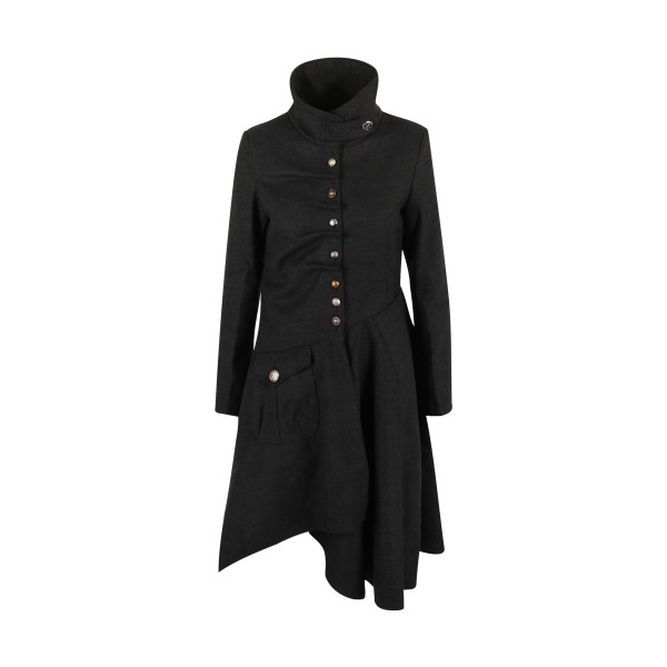 Sort elegant trenchcoat med knytting bak. Den har stilig utforming dekorert med knapper. Laget av svært gode materiale.