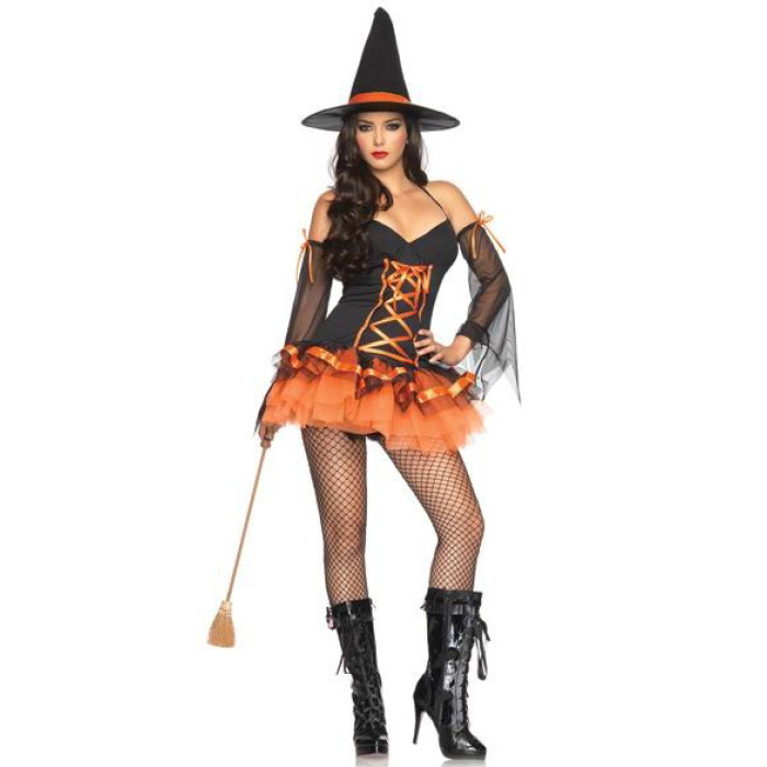 Oransj-svart sexy heks kostyme